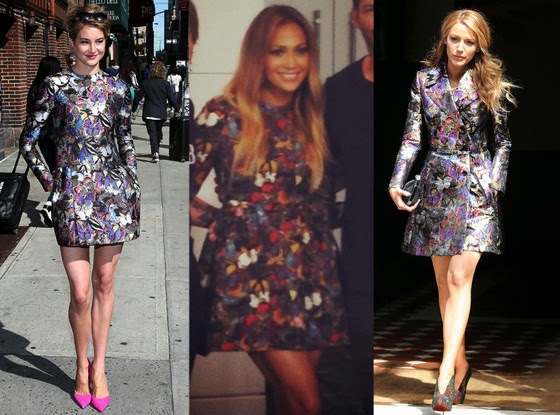 Shailene Woodley and Jennifer Lopez, move over! Blake Lively is in town! Our girl Blake wears this Valentino Butterfly Brocade Coat like she owns it. And of course the Queen of Louboutins completes the look with a pair of sparkling fastissima booties. For more details on Blake's winning look, check out our Vibrant in NYC post. EOnline also asked readers to vote on the winner, and I guess E! readers agree with me...
